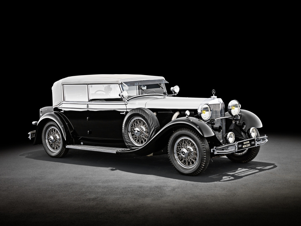 Mercedes-Benz 770 „Großer Mercedes“ (Baureihe W 07, 1930 bis 1938) in der Ausführung als Cabriolet D, Baujahr 1931. Von dieser Baureihe sind in allen Karosserievarianten insgesamt nur 117 Stück gefertigt worden.