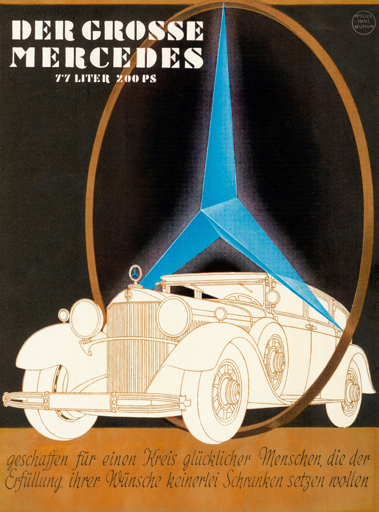 Mercedes-Benz 770 „Großer Mercedes“ (Baureihe W 07, 1930 bis 1938), Werbeanzeige mit dem Text „Geschaffen für einen Kreis glücklicher Menschen, die der Erfüllung ihrer Wünsche keinerlei Schranken setzen wollen“.