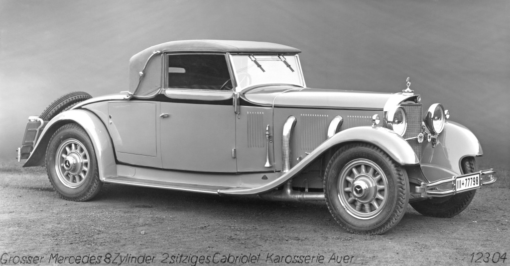 Mercedes-Benz 770 „Großer Mercedes“ (Baureihe W 07, 1930 bis 1938) mit zweisitzigem Cabriolet-Aufbau der Karosseriefabrik Chr. Auer GmbH in Stuttgart-Bad Cannstatt. Die seit 1900 bestehende Karosseriefabrik baut in den 1920er- und 1930er-Jahren hauptsächlich für Mercedes-Benz und Maybach Luxuskarosserien. Foto aus dem Jahr 1931.