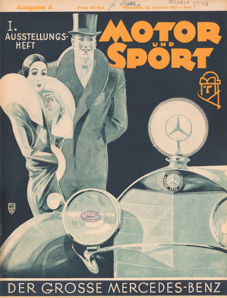 Mercedes-Benz 770 „Großer Mercedes“ (Baureihe W 07, 1930 bis 1938) auf dem Titel eines Ausstellungshefts, herausgegeben vom Fachmagazin „Motor und Sport“, 15. Februar 1931.