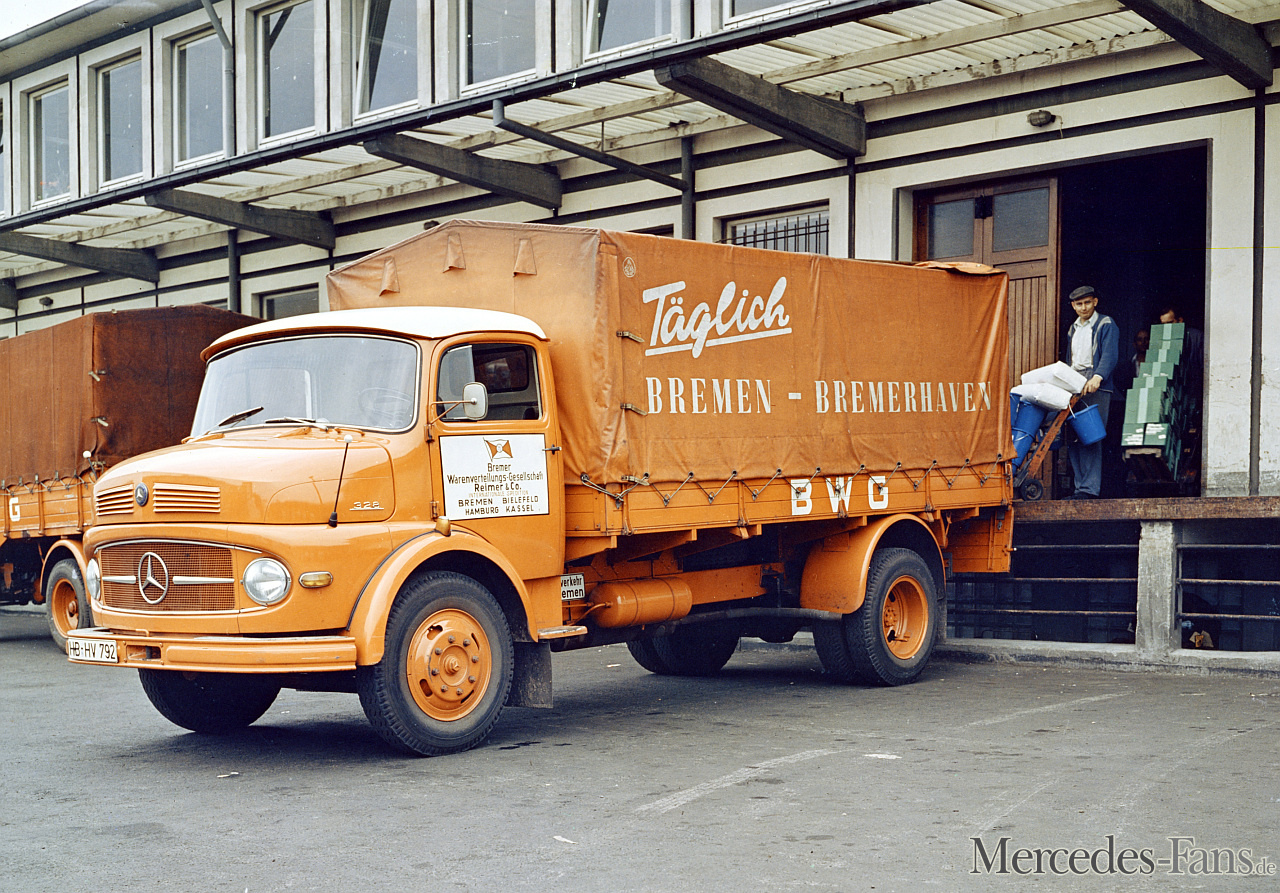 Mercedes-Benz L 328, Pritschenwagen der Bremer Warenverteilungs-Gesellschaft Reimer & Co. Foto aus dem Jahr 1966.