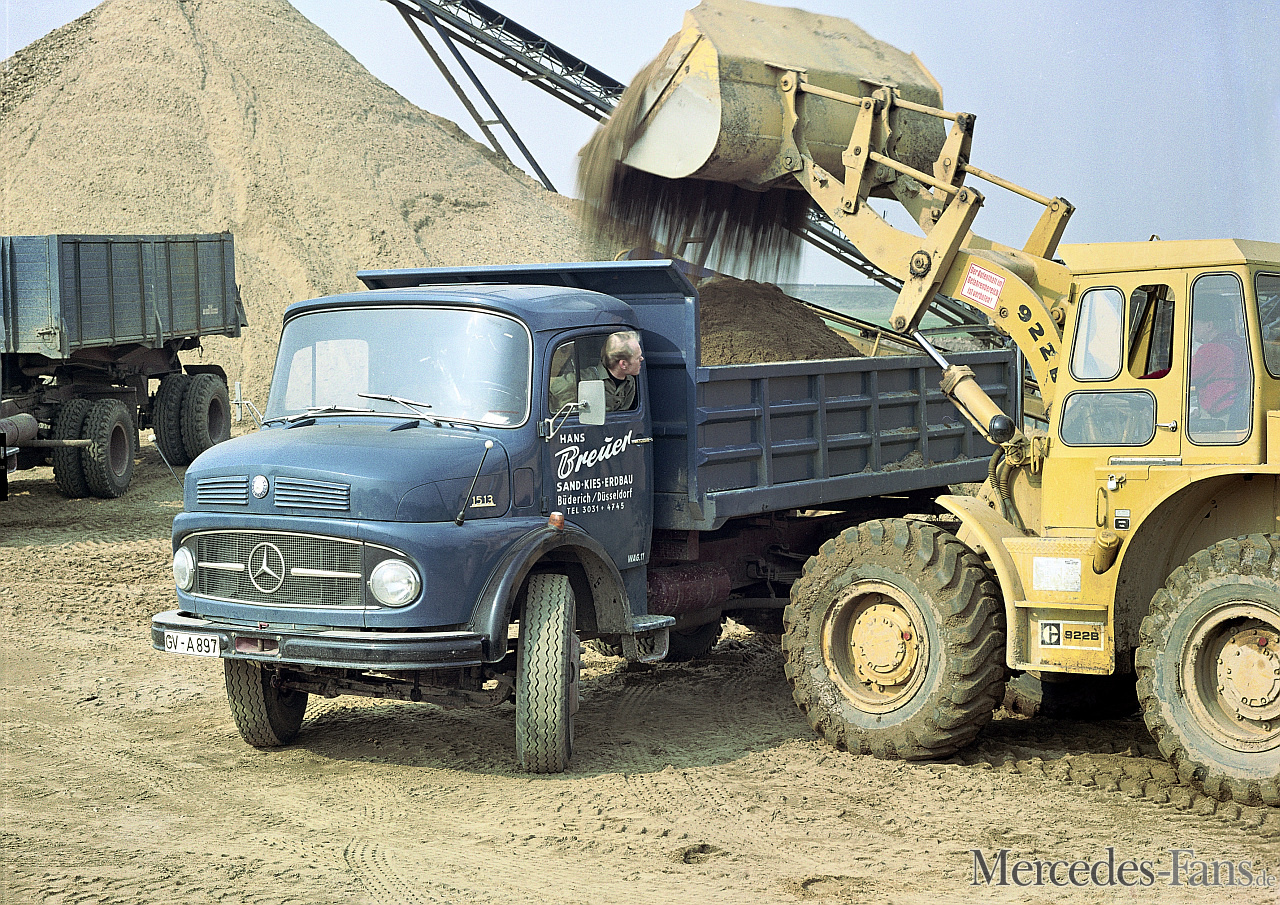 Mercedes-Benz LK 1513, Kipper bei der Beladung in der Kiesgrube. Foto aus dem Jahr 1969.