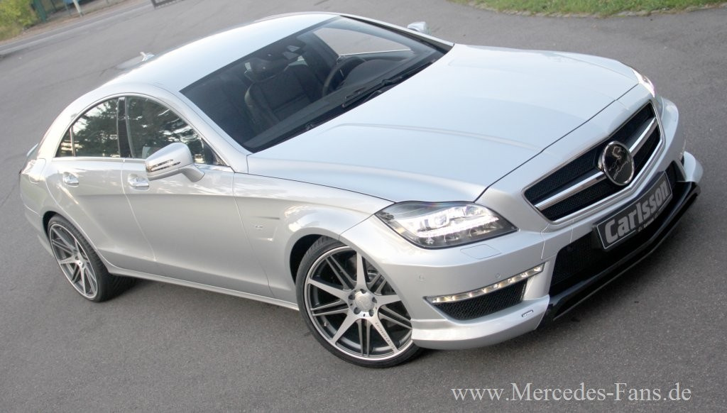 Die Automobilmanufaktur Carlsson nutzt die formschöne Linienführung der neuen Modellgeneration des Mercedes-Benz CLS (Typ C 218), um die Eleganz und Sportlichkeit des Modells dezent zu unterstreichen. Die Spitzenversion Carlsson CK63 RS auf Basis des CLS 63 AMG mit Performance Package feiert auf der IAA 2011 ihre Weltpremiere. Die coupéhafte Silhouette des Fahrzeugs wurde von der Automobilmanufaktur aufgenommen und mit einem umfassenden Aerodynamikpaket verfeinert. Der neue Frontspoiler und die Frontspoilerlippe RS aus Echtcarbon sorgen für einen agilen Auftritt der luxuriösen Limousine, der von den schwarzen Edelstahlgrilleinsätzen noch unterstützt wird.