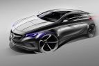 Lange Haube, flache Silhouette und schlanke Scheibengrafik: Die Proportionen des Mercedes Concept A-Class signalisieren konzentrierte Dynamik. Das sportliche Erscheinungsbild erhält durch das Linien- und Flächenspiel eine besondere Tiefe. Wellen und Wind sowie der Flugzeugbau waren die Inspirationsquellen der Designer.