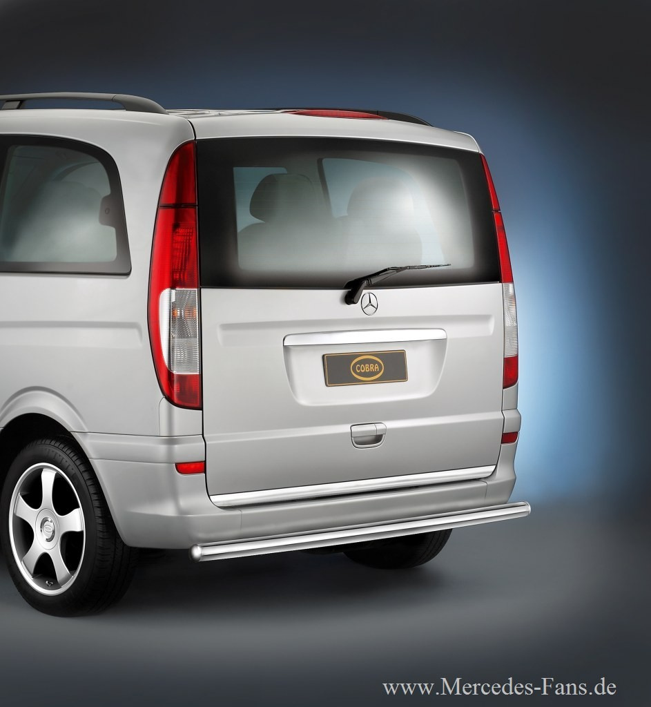 Für die neue Generation der Mercedes Vans Viano und Vito bietet Cobra Technology & Lifestyle Styling-Zubehör in Form LM-Rädern sowie Edelstahl-Komponenten für Front, Seiten und Heck an. Die hochglänzenden Edelstahlrohre sind in unterscheidlichen Durchmessern von 50 mm und 60 mm lieferbar. Neben einer optischen Aufwertung des Mercedes sollen sie auch die Karosserie vor Kratzern und Beulen schützen helfen. Darüber hinaus hat der Tuner für Vito und Viano ein Fünfspeichenrad namens Grenada im Format 8 x 18 im Programm.