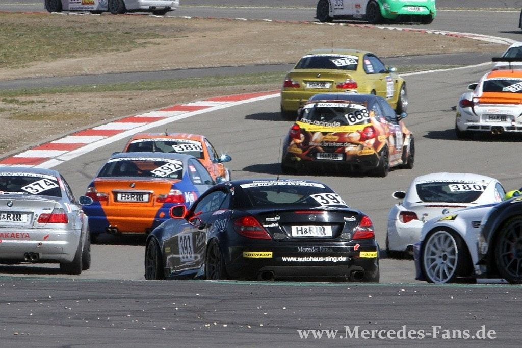 Dem 1 Lauf zur VLN-Langstreckenmeisterschaft werden die meisten Mercedes-Fans sicherlich mit großer Spannung entgegen gefiebert haben. Hatte sich doch gleich eine Armada von SLS AMG GT3 zum 1. Lauf der neuen Saison angekündigt. Aber auch in den kleinen Klassen gibt es großen Motorsport mit Stern, z.B. in der Klasse V6, in der das Team Motorsport Sing mit einem SLK 350 antritt. Trotz Zielankunft waren die Heidenheimer nicht ganz zufrieden. Denn wirklich schneller als im Vorjahr war der SLK dann doch nicht…