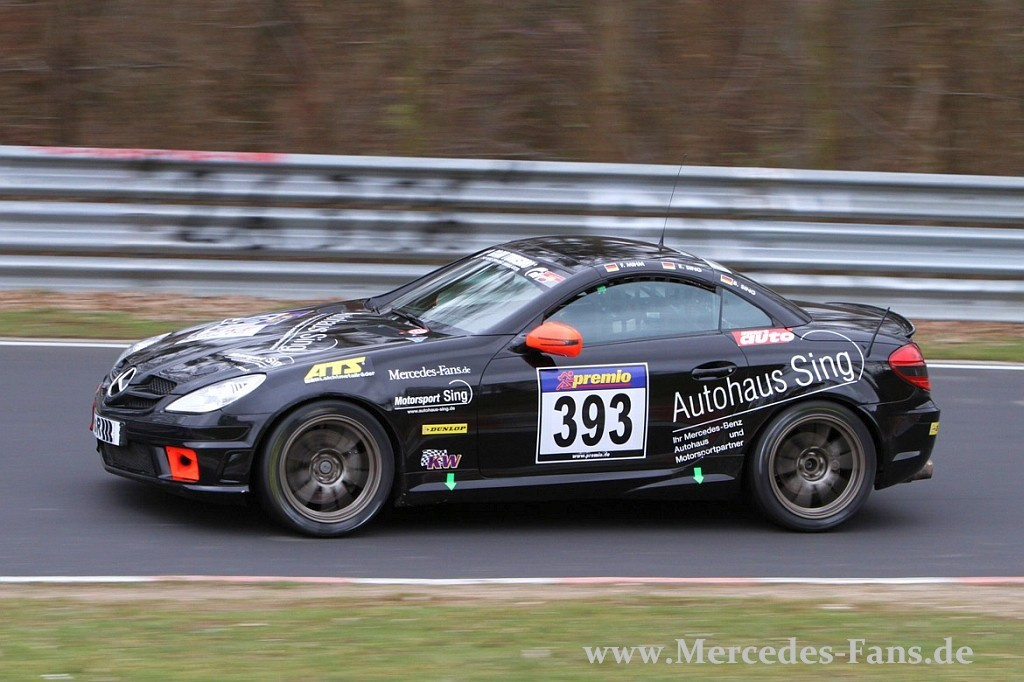 Dem 1 Lauf zur VLN-Langstreckenmeisterschaft werden die meisten Mercedes-Fans sicherlich mit großer Spannung entgegen gefiebert haben. Hatte sich doch gleich eine Armada von SLS AMG GT3 zum 1. Lauf der neuen Saison angekündigt. Aber auch in den kleinen Klassen gibt es großen Motorsport mit Stern, z.B. in der Klasse V6, in der das Team Motorsport Sing mit einem SLK 350 antritt. Trotz Zielankunft waren die Heidenheimer nicht ganz zufrieden. Denn wirklich schneller als im Vorjahr war der SLK dann doch nicht…