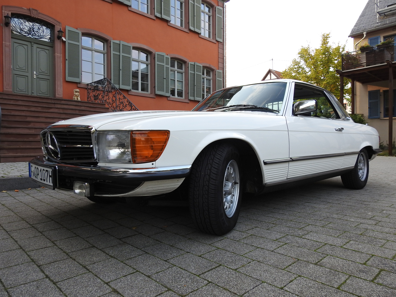 Mein 380 SLC hat den Weg aus Japan zurück gefunden. Nur 80.000 km gelaufen präsentiert er sich in TOP Zustand. Sein V8 schnurrt klasse und hat genügend Dampf. Die klassische Farbkombination aus Classicweiß mit Stoff Blau passt perfekt.