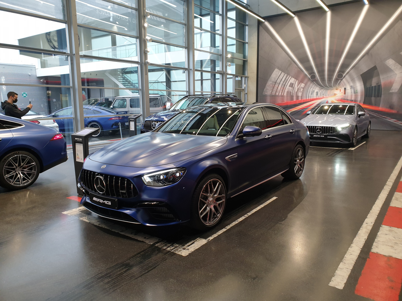 Wie kommt man als Normalverdiener zur Gelegenheit mehrere aktuelle AMG-Modelle ausgiebig fahren zu dürfen? Man könnte welche kaufen oder leasen und wg der horrenden Kosten den Familienfrieden riskieren. Man könnte auch eins mal für ein Wochenende mieten. Aber das wäre eben nur eins. Zum Glück haben die Cleverles bei AMG schon lange eine Lösung für dieses schlafraubende Problem. Unter dem Label AMG Driving Events veranstaltet man ein paar Mal im Jahr etwas, daß für einen relativ überschaubaren Betrag genau das bietet: mehrere aktuelle AMG-Modelle ausgiebig fahren. Und wenn man schon in Affalterbach ist, gibt es eine Werksführung obendrauf. Letztes Jahr war das pandemiebedingt nicht möglich. In diesem Jahr konnten über das Jahr verteilt vier Events dieser Art angeboten werden und alle waren ziemlich schnell ausgebucht. So auch das am 12.10.2021. Bei richtigem Sauwetter trafen sich nun 18 Teilnehmerinnen und Teilnehmer ab 8 Uhr in der Private Lounge. Die weiteste Anreise hatte dabei ein Vater/Sohn-Duo aus Norwegen. Nachdem man in drei Gruppen aufgeteilt wurde ging es zunächst zur Werksführung. Die Motorenproduktion konnte leider nicht besichtigt werden. Wg des strikten Prinzips One Man-One Engine will man da absolut kein Risiko eingehen. Als Alternative ging es ein bißchen die Straße runter zu HWA. AMGs quasi-Motorsportabteilung war auch spannend. Bei ca 150 GT3 und GT4 die da pro Jahr für die verschiedenen Teams zusammengeschraubt werden schien das Arbeitspensum eher entspannt zu sein. Maximilian Götz´ Siegerauto, mit dem er nur zwei Tage zuvor die DTM gewonnen hat, stand ebenfalls da. Leider waren in diesem Bereich Fotos strengstens untersagt sonst wäre der pinkfarbene GT3 mit allerlei Kampfspuren selbstredend abgelichtet worden. Umso mehr konnte man die umherfahrenden Prototyen des SL und anderer Modelle fotografieren. Wenn man schnell genug war bzw wenn die mal pitoresk vor einem der Werksgebäude geparkt waren. Übrigens klangen die vorbeifahrenden SL alle verdächtig nach V8. Zurück in der Private Lounge wurden nach einem ausführlichen Briefing zwei Gruppen eingeteilt. MaW, jetzt ging es endlich ans Fahren. „Meine“ Gruppe bekam einen 45 S, einen GT 63 S, einen G 63 S und einen GT R zugeteilt. Immer dem Instruktor und seinen Funkanweisungen folgend wurde in fester Zweierbesetzung gefahren. Bei jedem Halt tauschten Fahrer und Beifahrer die Plätze bzw es wurde in das jeweils folgende Fahrzeug gewechselt. Bis zur Mittagspause durften wir uns im GT 63 S und im 45 S austoben. Man weiss es zwar theoretisch aber von einem V8-Luxusschlitten in die vierzylindrige Knallbüchse zu wechseln ist in der Realität schon ne lustige Erfahrung. Nach dem Mittagessen im noblen Ambiente ging es mit dem GT R weiter. Bei einer Leistung von weit über 500 PS, Heckantrieb und feuchten sowie Kurvenreichen Land- und Kreisstrassen war nix mehr mit lustig. Ein ungestümer Heckschlenzer, den das ESP eingefangen hat, reichte völlig um vor diesem Biest gehörigen Respekt zu haben. Zum Schluß der Wechsel vom Souterrain in den zweiten Stock, sprich, in den G 63 S. Ein Unterschied wie Tag und Nacht nicht nur wg der Sitzhöhe. Auch das weiß man in der Theorie. Faktisch ist der G jedoch in der „neuen“ Generation eine fahrende Schrankwand geblieben und drängt in engen Kurven eher nach außen. Als Familienauto ist er von allen gefahrenen Modellen mE erste Wahl. Bis auf die Kleinigkeit von etlichen tausend Euronen. Und dann waren wir auch schon wieder in der Private Lounge wo es noch Kaffee und Kuchen gab sowie diverse kleine Abschiedsgeschenke. Vielen Dank allen Beteiligten bei AMG für dieses sehr coole Event. Und auch einen Gruß an Mitfahrer Stefan, der diese Veranstaltung bereits zum 20. Mal (!) besuchte. Ich werde in ein paar Jahren bestimmt mal wieder mitmachen. Wer weiß, vielleicht sind wir dann größtenteils elektrisch unterwegs…