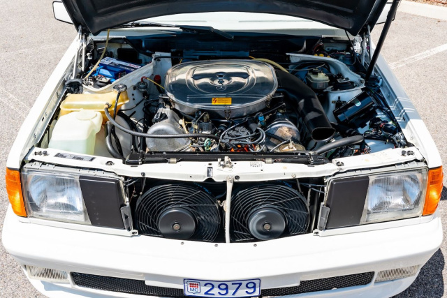 Das serienmäßige Herz des umgebauten Baby-Benz – ein M102-Vierzylinder – wurde im Zuge der Transformation zum Cabriolet durch einen kraftvollen 3,8-Liter-M116-Aluminium-V8 ersetzt, kombiniert mit einem 4-Gang-Automatikgetriebe. Die Leistung beträgt 204 PS. Die Höchstgeschwindigkeit liegt bei 216 km/h mit geschlossenem Verdeck und 206 km/h mit geöffnetem Verdeck.