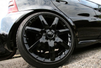 Räder: Mercedes-Rad Alshain (schwarz lackiert), 7,5 x 17 vorne und 8,5 x 17 hinten
