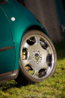 Auch die Felgen mussten sich wandeln. Derzeit drehen sich verdichtete 7x17 Zoll große Carlsson Felgen mit verchromten Maybach Nabendeckeln an den Achsen des A140. Die Tieferlegungsfedern steuerte ebenfalls Carlsson bei. Mit der erzielten Tieferlegung ist die stolze Besitzerin derzeit allerdings noch nicht hundertprozentig zufrieden; aus diesem Grund wird es hier sicherlich bald noch etwas deutlicher abwärts mit der A-Klasse gehen.