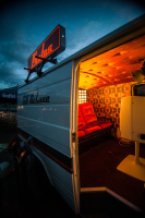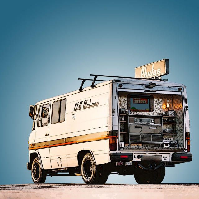 Cliff McLane ist ein rollender Fotoautomat, den ein Auftraggeber für Partys oder Events buchen kann. Wer das tut, handelt sich ein einzigartiges Gesamtkonzept mit außergewöhnlichen Fisheye Fotos ein. Freakiges Interieur mit Plüschsofa und Omatapete. E-Gitarre mit Verstärker. Eingebaute Nintendo NES Konsole zum Super Mario Zocken. Sofortdrucker im Phonoschrank. Email Versand. Mehrere Social Media Stationen. Handverlesene Accessoires aus den 70ern & 80ern. Große Markisen für Fotospaß auch bei schlechtem Wetter – das alles und noch mehr steckt in Cliff McLane.