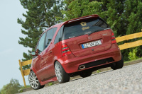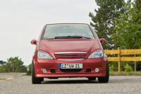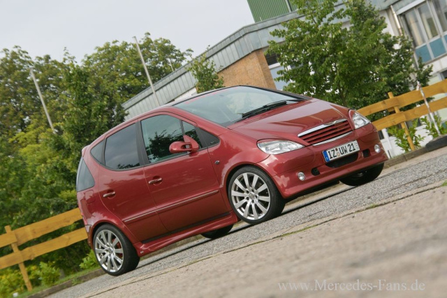 Ferner tragen optische Retuschen, die der Mercedes-Fan mittels Mopf-Parts realisierte, zur Verjüngung des Erscheinungsbildes des W 168 bei. Diesbezüglich bringen Scheinwerfer, Avantgarde-Rückleuchten, Stoßleisten und aktualisierte Türgriffe den Vulkanrot lackierten Elch formvollendet zur Geltung.