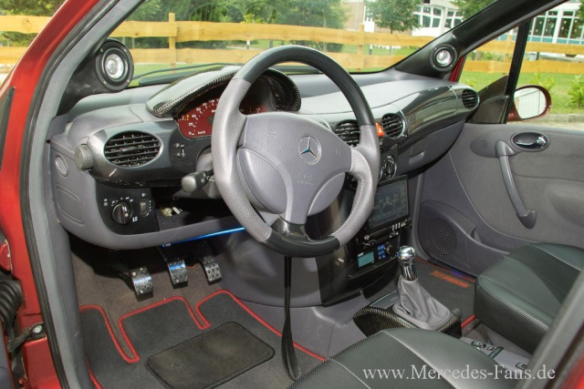 Accessoires von Brabus werten die Kabine des W 168 sportlich auf