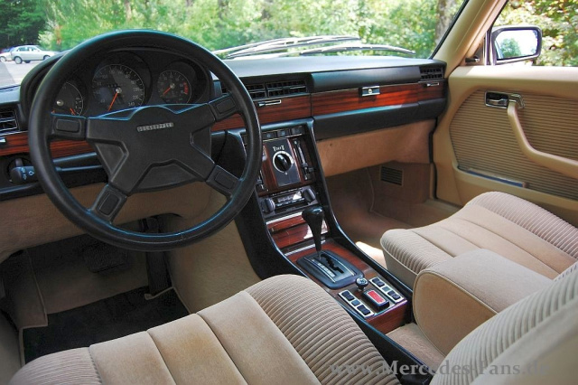 AMG verpasste der Mercedes S-Klasse ein neues Sportfahrwerk, breite Felgen, einen Frontspoiler und ein AMG-Lenkrad. Gepaart mit den serienmäßigen 225 PS reichte dies damals für flotte Fortbewegung auf hohem Niveau: Wenn ich in München ausgestiegen bin, war ich völlig entspannt und hab unterwegs vielleicht 5 Zigaretten geraucht, der Porsche-Pilot war nicht schneller, musste aber das Hemd wechseln!