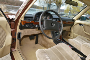 Das sportlichere Schuhwerk des Mercedes 450 SEL passt gut zu den Fahrleistungen, die ihm sein 4.520-ccm-V8 ermöglicht. Dessen 218-Serien-PS befördern die S-Klasse, die immerhin 1790-kg-Leergewicht auf die Waage bringt, auf 210-km/h-Höchstgeschwindigkeit. Der Sprint von 0-100 km/h ist in knapp 10 Sekunden abgearbeitet. Das mag heutzutage kaum das Zeug zum Pulsbeschleuniger haben, aber damals gehörte das zu den Bestwerten in der Oberklasse.