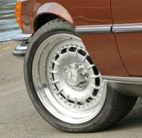 Um seinem Mercedes 450 SEL ein etwas anderes, vor allem sportlicheres Gepräge zu geben, bekam er von Alex selbst fabrizierte dreiteilige Barock-Felgen spendiert. Bei Ihnen ist 8 x 18 VA und 8,5 x 17 HA das Maß der Dinge. Die schönen Räder profilieren sich mit Falken-Pneus der Dimension 235/40 ZR 17 vorn und 255/40 ZR 17 hinten.