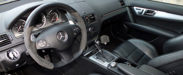 Innenraum: Mercedes C63 AMG mit Sportlenkad, Sportsitzen, Einstiegsleisten, Teppichen und Lederausstattung