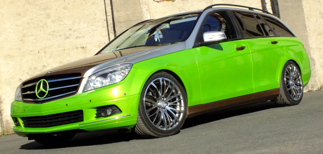 „Folierungen haben selbstverständlich ihre ganz eigenen Vorzüge“, sagen Thorsten Fug und Sebastian Wojack, „aber wenn ein Topping wirklich einzigartig werden soll, geht doch nichts über kreative Lackierungen.“ Die beiden Inhaber von T&S-Lack realisieren individuelle Designs gemäß der Wünsche ihrer Kunden. Als rollende Visitenkarte fungiert ihr auffällig kolorierter Mercedes 220 CDI der Baureihe S204.