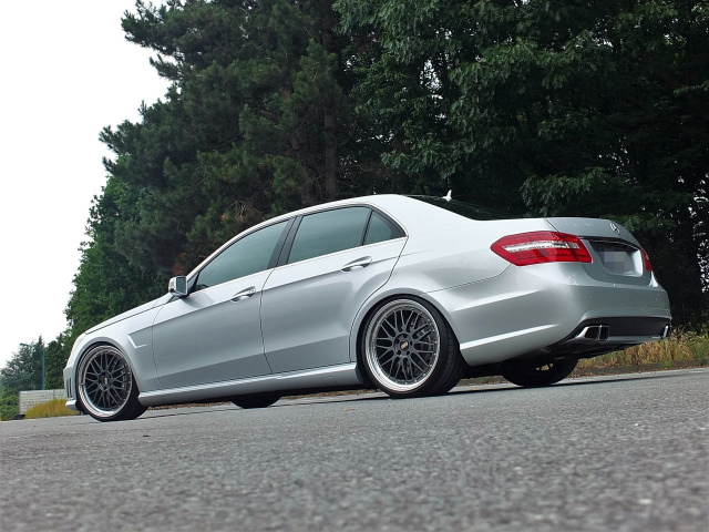 Stark und energiegeladen steht die Mercedes E63 AMG W212 Limousine da. Der ebenso kraftvolle wie schwungvolle Eindruck der dynamischen E-Klasse rührt nicht zuletzt von den BBS Le Mans-Rädern her. Bei den Felgen im attraktiven Bicolor-Style ist 9,5 x 20 ET50 und 10,5 x 20 ET50 das Maß der Dinge. Weil die Radsterne nach außen versetzt wurden, erhöhte sich der ET-Wert übrigens um 14 mm.