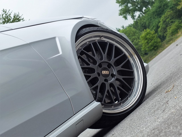Räder: BBS „Le Mans“ in 9,5 x 20 ET50 VA und 10,5 x 20 HA ET50 (Radsterne nach außen versetzt, dadurch Erhöhung der ET um 14 mm)