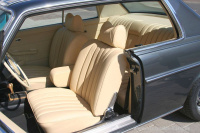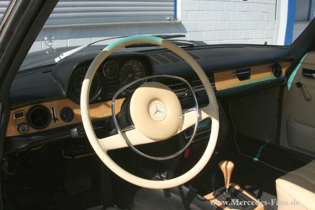 Im Innenraum konnte sich derweil der Polsterer bei einer neuen Ausstattung in hellem Leder austoben. Farblich darauf abgestimmt hielt ein Lenkrad aus der W108er-S-Klasse Einzug in das luftige Hardtop. Vogelahorn-Holzapplikationen und ein klassisches Becker Europa-Autoradio werden das Interieur zusätzlich auf.