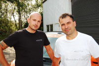 Den bulligen Auftritt verdankt das mittels Lotec-Federn um 40 mm tiefer gelegte Geschoß einem Lorinser-Breitbau inklusive Frontschürze und Heckspoiler. Allerdings wurden alle Anbauteile von Robert Sekulic und seinem Team noch einmal angepackt und modifiziert. In den deutlich ausgestellten Radhäusern stecken nun 17-Felgen in Racing-Schwarz.. Ebenfalls von Lorinser . Sie hören auf den schönen Namen Speedy! Von hinten betrachtet, macht man sich ernsthaft Sorgen, ob der Motor den Rollwiderstand der dicken 8,5x17 Felgen, die mit 225/35er gummiert sind, überwindet. Man kann es sich kaum vorstellen