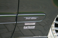 Sonstiges: Carlsson Embleme, schwarze Klarglas-Xenon-Scheinwerfer, Linsen-Nebelscheinwerfer, Rauchglas-LED-Rückleuchten, Kurzstabantenne, Aero-Wischer, vordere Kotflügel 20 mm gezogen, Innenkotflügel bearbeitet; Final Editon Lenkrad mit Carlsson Logo, Carlsson Tacho-Scheibe (bis 320 km/h), Carlsson Vogelahorn-Holz, Leder-/Alcantara-Polsterung (Final Editon), grauer Edelvelours-Teppich (Final Edition), Command Radio-System, Boss DVD-Player, Bose Lautsprecher-System, Alarmanlage Radar-Fahrzeugumfeld- und Innenraumüberwachung, Reifendrucksensoren, Windschott,