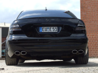 Die Emissionen rauschen sonor durch die Edelstahlrohre der ab Kat nachgerüsteten Auspuffanlage, ein Eigenprodukt von Modatho Car-Performance, ins Freie. Mithilfe der per Fernbedienung zu steuernden Auspuffklappen kann Erkan Sabanci die Akustik seines Mercedes E500 nach Belieben beeinflussen.