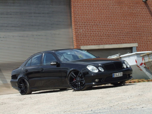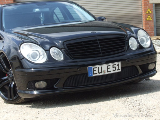 Wie man unschwer sehen kann, ist es für den Benz nunmehr ziemlich düster bestellt. Diese Formulierung bezieht sich natürlich ausschließlich auf das Erscheinungsbild des W211. Stilistische Qualität und Ausstrahlung der durchgeführten Modifizierungen sind nämlich über jeden Zweifel erhaben.