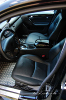 Im Inneren wird dir Schwarz vor Augen! Man muß das Bild anklicken, um zu verstehen! Denn dann wirkt es!!! Der 25-jährige Kfz-Elektriker hat das Thema auch hier konsequent umgesetzt. Natürlich schwarzes Leder, gut gepflegt, als Schaltknauf der 6-Gang-Automatik steht ein Exemplar aus dem SLK (R171) in Chrom-Matt zur Verfügung! Ein modifiziertes Sportlenkrad mit Brabus Logo fügt sich ebenso harmonisch in das Gesamtbild ein wie die Brabus-Pedalerie und die verchromten Doorpins! Angemessene Unterhaltung bieten die in Sonnenblenden und Kopfstützen integrierten 7" und 9" Displays. Eine Alpine-Headunit mit I-Podsteuerung und Touchscreen sowie eine fette 1200 W-Endtuffe mit zwei 30er Free-Air-Woofern sorgen für ordentlich Bums.