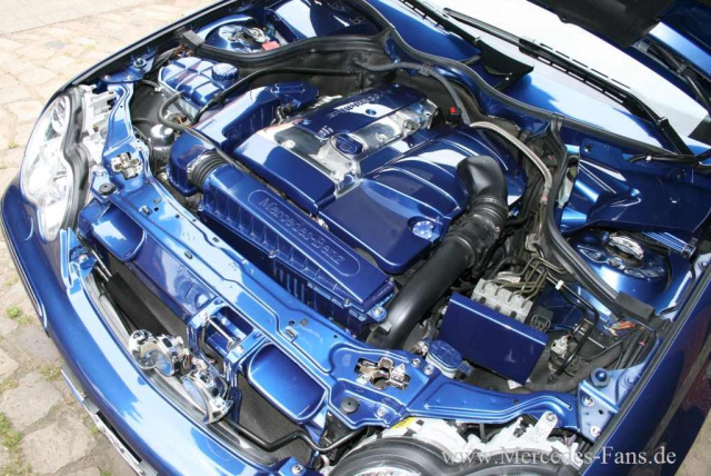 Farbe und Chrom werten den Motorraum des W203 auf