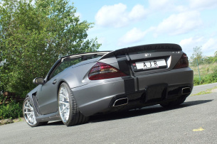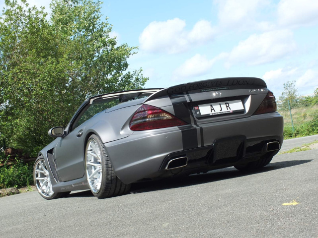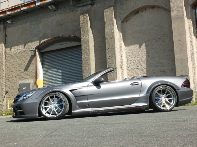 Der erste Blick raubt den Atem - vorausgesetzt man mag Breitbau. Tief duckt sich der SL 500 auf die Straße, fast so, als würde er mit ihr verschmelzen wollen. Die aggressiv gezeichnete Front des Prior Black Series-Design-Kits wirkt wie die Visage eines Raubtiers, bereit zum Sprung.