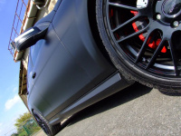 Obgleich immer öfter im Straßenbild zu bewundern, hegen viele Individualisten noch Zweifel ob der Alltagstauglichkeit von Karosserie-Folie. Skeptiker kann der Vertriebsleiter aber beruhigen: Bei der Folie sollte man natürlich auf Spitzenqualität achten. Da darf man nicht an der falschen Stelle sparen. Die Karosserie ist nahezu komplett beklebt außer der Dachreling und dem Grill in der Frontschürze. Die Folierung ist absolut waschstraßentauglich, versichert Karl-Heinz Tolkamp.