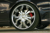 Optisch scheint das "designo"-panther-schwarze Mercedes Coupé zunächst dezent, lediglich die verchromten DVinci Aluräder in 8,5x20 mit den wie ein Flitzebogen gespannten Pirelli Reifen in 235/30 R20 stechen ins Auge, doch irgendwas ist anders!