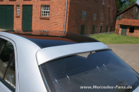 Christian wollte beim Aufbau nicht kleckern, sondern klotzen wenn auch dezenter als manch anderer Umbau, den wir auf Mercedes-Fans.de schon vorgestellt haben. Das Auffälligste ist natürlich die neue Lackierung, Christian entschied sich für ein silber-blau und ließ das Dach in einem glänzenden Schwarzen Klavierlack überziehen.
