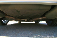 Eine der aufwendigsten Änderungen an der Karosserie sieht man (leider) nicht. Christian änderte nämlich die Bodengruppe seiner C-Klasse, um eine Auspuffanlage des CL 500 an seinen 230 Kompressor anschließen zu können.