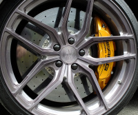 Die luftig designten Felgen geben den Blick auf die vorne in Stellung gebrachte Performance-Bremsanlage, die AMG für die S-Klassen-Modelle S63 und S65 bereithält, frei. Die AMG Keramik Hochleistungs-Verbundbremsanlage bietet Brems-Performance auf absolutem Motorsport-Niveau. Denn die Scheiben aus mit Kohlefasern verstärkter Keramik werden im Vakuum bei 1.700 Grad Celsius gefertigt. Materialien und Produktionsverfahren verleihen ihnen einen besonders hohen Härte- und Wirkungsgrad. Solchermaßen gerüstet, erweist sich der Mercedes-AMG E63 in allen Belangen auf Höchstleistung getrimmt.