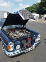Der Vorbesitzer des Mercedes-Benz 280 SE, den der MIB im Jahr 1997 erwarb, war ein Unternehmer, der drei Jahre zuvor verstorben war. Der hielt sozusagen über seinen Tod hinaus an dem Wagen fest. Weil von dessen Nachkommen schlußendlich keiner mit der stattlichen Limousine etwas anfangen konnte, wurde entschieden, ihn zu verkaufen. Karl Peter Hauser war der glückliche Erwerber. Auch für den Benz war das ein Glücksfall, denn der Wagen wurde somit nicht nur in die berühmten „guten Hände“ abgegeben, sondern auch in kundige. In Sachen Wartung,Pflege und Reparatur eines Mercedes-Benz hat Karl Peter Hauser nämlich nichts verlernt. Alles, was es an dem Benz zu tun gab und gibt, erledigt(e) er stets selbst.