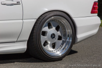 Doch von so einem Miesepeter ließ sich Alex nicht die gute Laune verhageln und tüftelte erst einmal ein paar Umbaumaßnahmen aus. Die flache Silhouette des SL sollte durch eine dezente Tieferlegung noch einmal unterstrichen werden. Alex entschied sich für die Kombination aus Brabus Tieferlegungsfedern und Bilstein Dämpfern. Nach der kleinen Fahrwerkskur stand der Benz flacher da, als erwartet. „Gute sieben bis acht Zentimeter hat die neue Kombination gebracht“, so der begeisterte Frischluft-Fahrer.