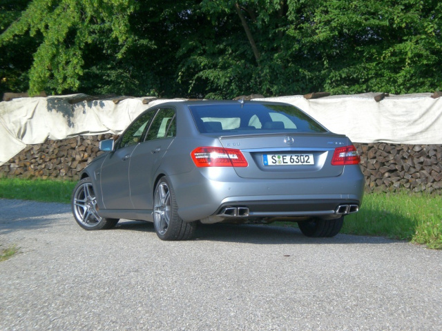 So soll sich der E63 bei ruhiger Fahrweise mit nur 12,6 Liter Kraftstoff auf 100 Kilometer begnügen. Wir schafften, bei sehr umsichtiger Fahrweise auf einer 30 Kilometer Testrunde sogar nur 12,1 Liter Durchschnittsverbrauch.