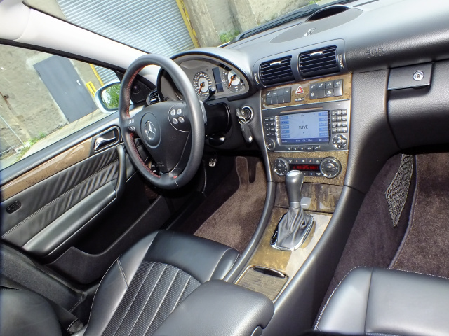 Innenraum: Original Mercedes C55 AMG mit Lenkrad, Pedalerie, Schaltknauf und Sitzen