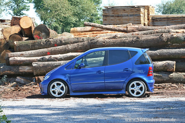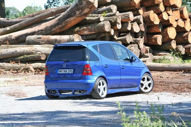 So wenig ihn die A-Klasse anfangs interessierte, umso mehr wuchs ihm der Wagen mit der Zeit ans Herz. Ein paar Veränderungen sollten es schon sein, um den tiefseeblauen Kompaktwagen aus der Masse hervor zu heben. Die Suche nach Teilen gestaltete sich indes schwieriger als gedacht. Das Angebot der Tuningbranche war überschaubar dünn, dementsprechend war guter Rat teuer und das Internet so nah. Bei den Clubkollegen der Elchfans (www.elchfans.de) fand sich Nelson schnell in guter Gesellschaft und so konnte der Umbau langsamen Schrittes steigen.