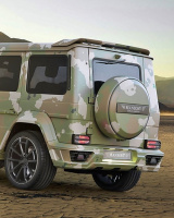 Des Weitern gehören eine mächtige Motorhaube, eine neue Frontschürze mit Unterfahrschutz, die Camouflage-Folie sowie eine Carbon-Heckstoßstange und ein Spoiler auf dem Dach zum Performance-Paket der SAHARA Edition.