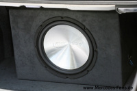 Nachdem auch dieser Punkt auf der To-Do-Liste abgehakt war, widmete sich unser Sternfreund den Wohlklängen, von Membranen erzeugt. Helix- und MacAudio-Lautsprecher bewegen die Luft im Takt der Musik, welche wiederum aus einem Kenwood DDX6029 Doppel-DIN Receiver stammt. Aufbereitet werden die Klänge von einem Blaupunkt Verstärker, welcher sich in Begleitung eines Subwoofers showtauglich im Kofferraum eingenistet hat.