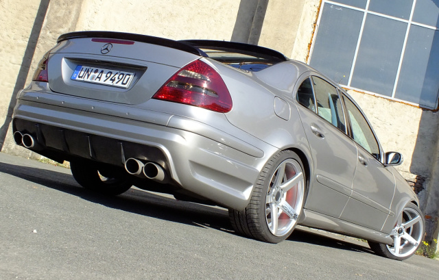 Zur Steigerung der sportlichen Ausstrahlung spendierte der 21jährige seiner E-Klasse ein Aerodynamik-Dress von Prior-Design. Heck- und Frontschürze sowie Seitenschwellerleisten packen die Limousine schön dick ein. So wirkt der – von Haus aus ja schon recht stattlich formatierte - E280 CDI nochmals deutlich massiger.