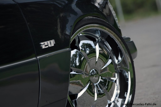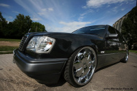 Schon als ich den Wagen das erste mal gesehen habe damals noch im Urzustand sah ich das Potenzial, aus dem W124 einen richtigen P.I.M.P.-Style Mercedes zu machen, beschreibt er die ersten Schritte mit seinem Wagen. Kaum erworben, waren die ersten Veränderungen der Avantgarde-Kühlergrill und der Nummernschildhalter in Ketten-Optik. Der Einbau von Crystal-Optik Front- und Rückleuchten waren neben dem Wechsel der Seitenspiegel auf englische W124-Spiegel die nächsten Veränderungen, die zu dem heutigen Ergebnis führten. Ganz im Brabus-Stil fanden auf jeder Seite fünf Hochleistungs-LEDs als Unterbodenbeleuchtung ihren Platz an dem Fahrzeug und eine 6000K Bi-Xenon Lichtanlage aus den USA.