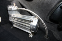 Das Luftfahrwerk, das in dem Auto verbaut ist, war eine besondere Herausforderung, berichtet Peter weiter, uns um seinen Wagen führend und jeden Schritt mit beinahe kindlicher Begeisterung beschreibend, Denn es gibt keine Luftfahrwerke für dieses Modell, also musste ich mir eines bauen, und ein verschmitztes Lächeln verrät bereits, dass er nicht ganz ohne Stolz davon erzählt.