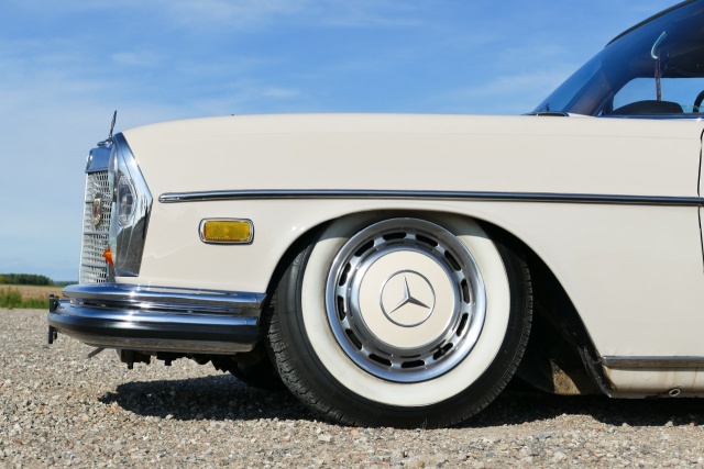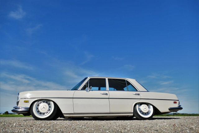 Hoch soll der Mercedes-Benz 280 S bei Serdal leben, aber tief muss der Wagen, den seitliche Markierungsleuchten und übereinanderliegenden Rundscheinwerfer als USA-Exportmodell dastehen lassen, liegen. Durch den Verlust an Bodenfreiheit, soll der 52 Jahre alte Mercedes noch mehr an Aufmerksamkeit gewinnen - so lautet die Intention des Lehrauftrags mit dem Serdal im Zeichen des Sterns unterwegs ist: